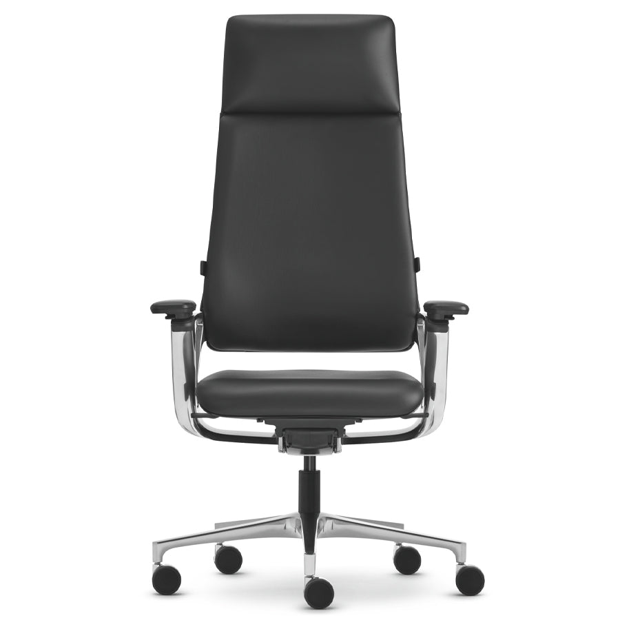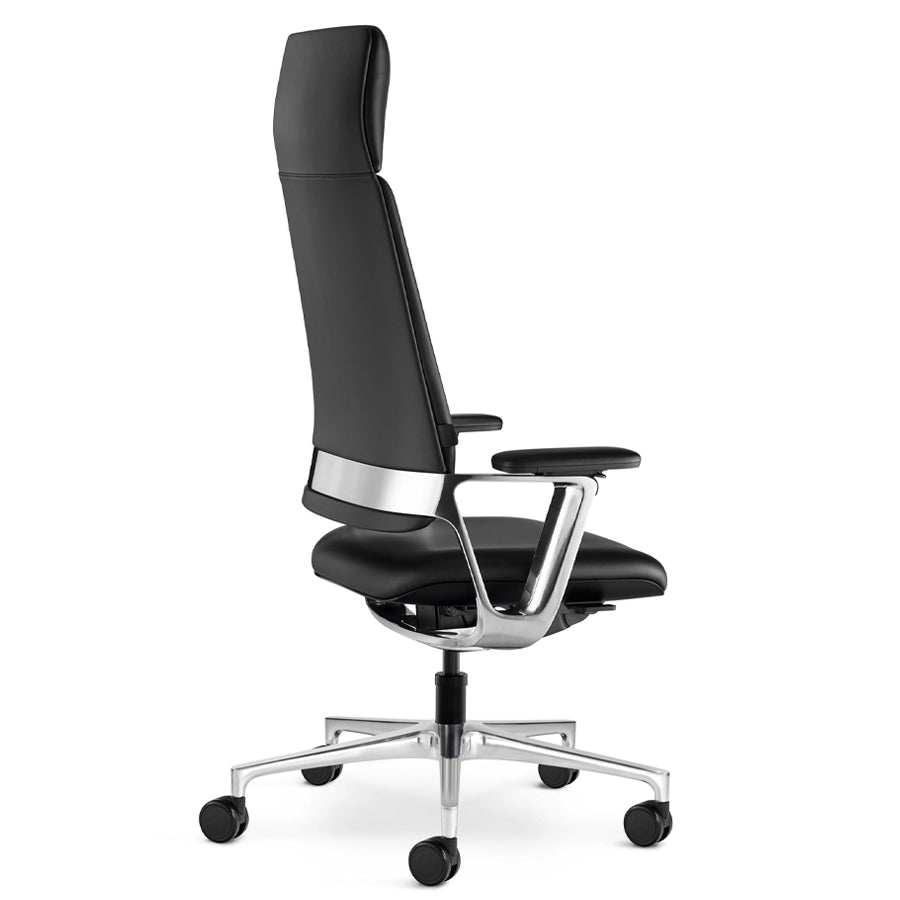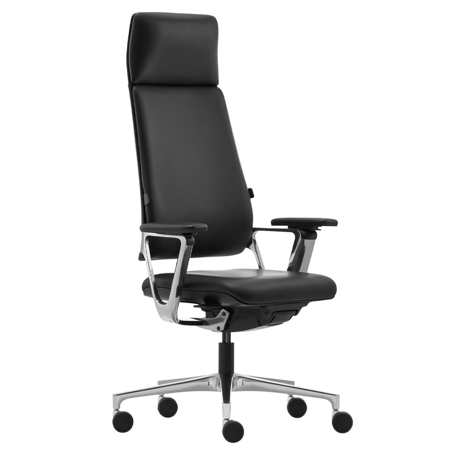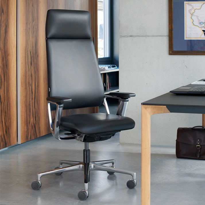 Die hohe Rückenlehne, polierte Aluminium-Elemente und die dreidimensional bewegliche Sitzfläche runden das Gesamtpaket ab und fördern eine gesunde Sitzhaltung.