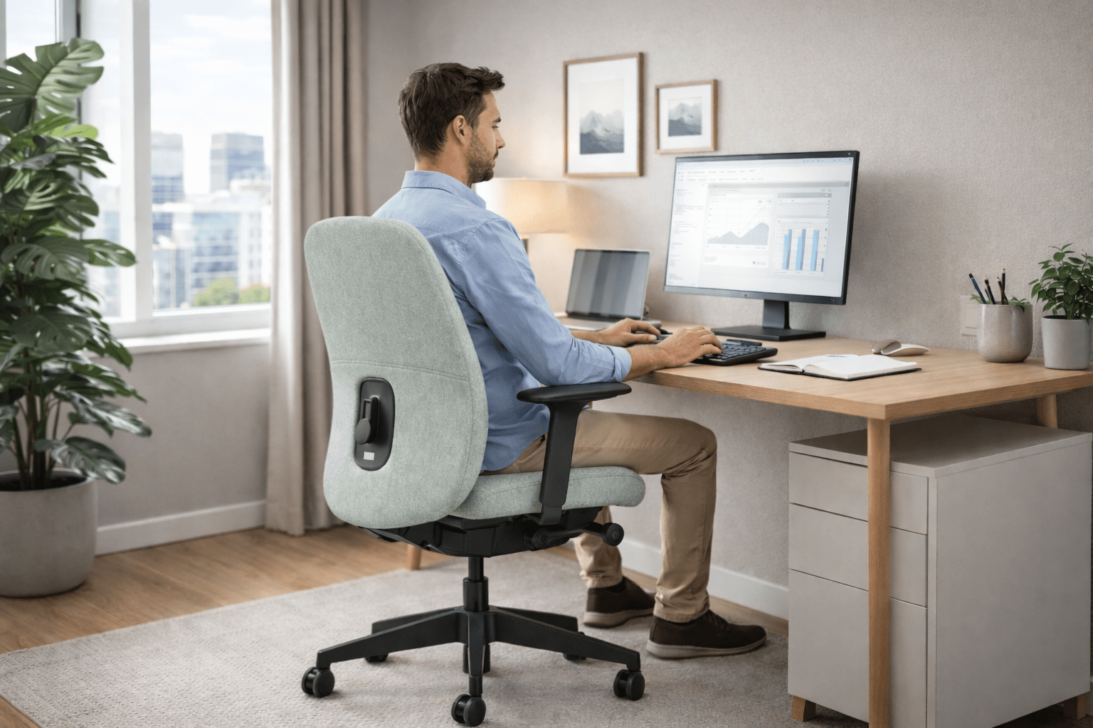 Der Interstuhl Hej Interior Edition verbindet wohnliches Design mit moderner Ergonomie. Weiche Formen, hoher Sitzkomfort und eine ergonomische S-Form treffen auf eine zeitgemäße Mechanik und alle relevanten Ergonomie-Features für den Arbeitsalltag.